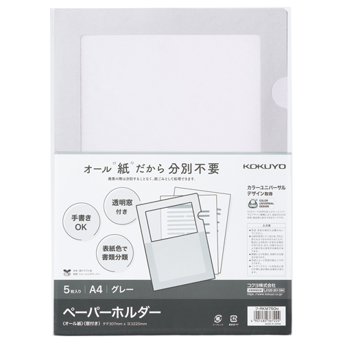 ペーパーホルダー<オール紙>(窓付き) 5枚入り グレー フ-RKM750M