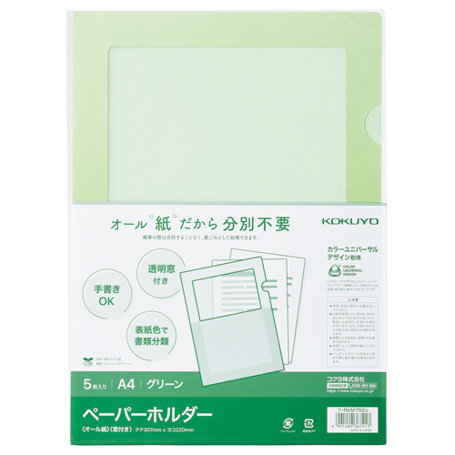 ペーパーホルダー<オール紙>(窓付き) 5枚入り グリーン フ-RKM750G