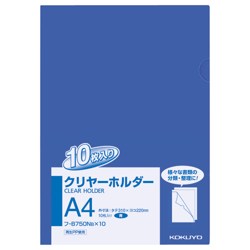 クリヤーホルダー(10枚パック) A4 青 フ-B750NBX10