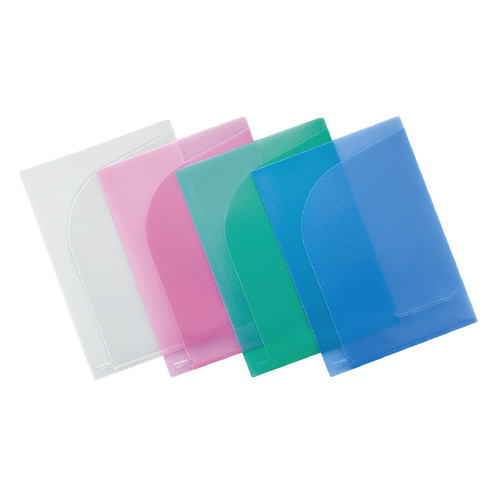 クリヤーホルダー<ポケット2> A4(A3二つ折り) 青 フ-T755B
