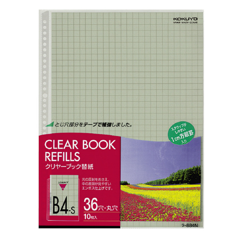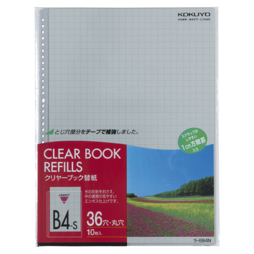 クリヤーブック替紙 B4縦 2・36穴 10mm方眼10枚入 ラ-884N