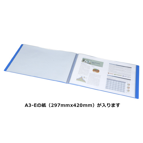 クリヤーブック ウェーブカットポケット A3横 固定式20枚ポケット 青 ラ-T548B
