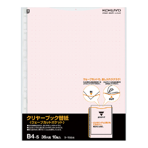 クリヤーブック(ウェーブカット)用替紙 B4縦 36穴 台紙色赤 10枚入 ラ-T884R