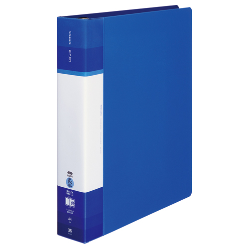 ●替紙式 ●穴数/30穴 ●リング内径/33mm ●表紙・ポケット/PP ●最大収容ポケット枚数/150枚 ●替背紙式 ●中紙なし ●エンボス仕上げポケット ●表紙・ポケット/再生PP ●とじ具と表紙の分別廃棄可能 ※「リベットはずし機」(フーRVT1)で表紙ととじ具を分別することができます。 ※背幅が広くなった場合、外寸法の幅は少し小さくなります。 ●A4タテ ●サイズ/312×282×55~72mm ●仕様:ポケット/35枚 ●色/ブルー