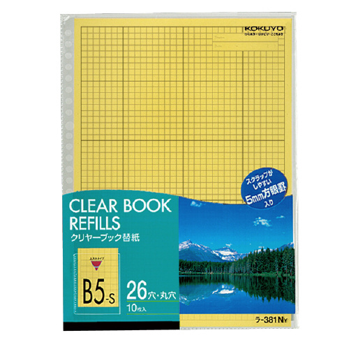 クリヤーブック替紙 B5縦 26穴 台紙色黄 10枚入 ラ-381NY
