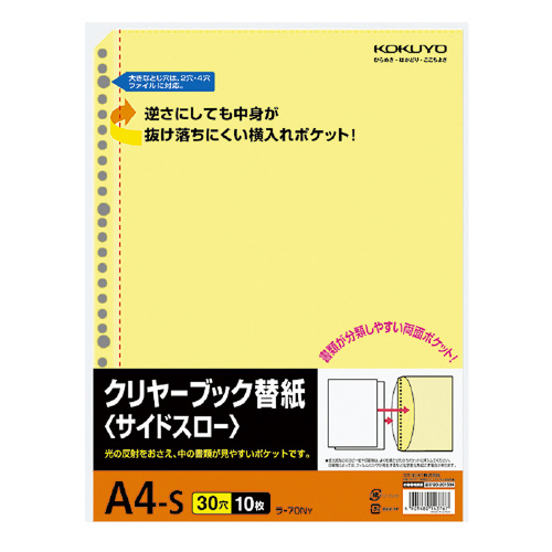 クリヤーブック替紙(サイドスロー) A4縦 30穴 台紙色黄 10枚入 ラ-70NY