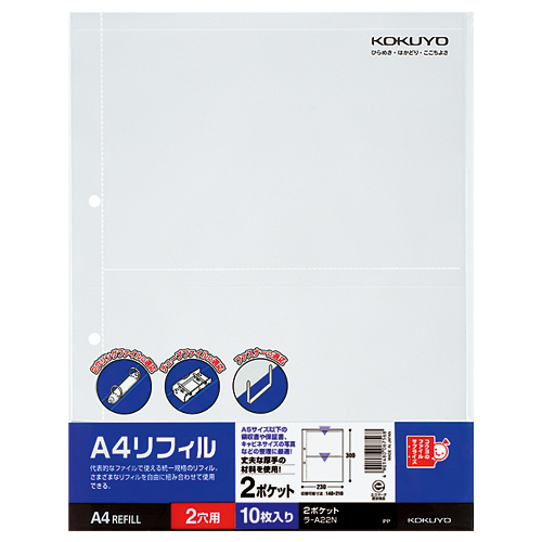 A4リフィル 2ポケット A4縦 2穴 10枚入 ラ-A22N