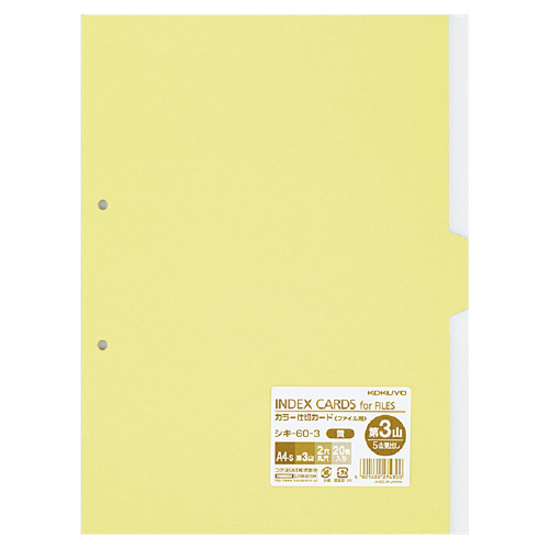 カラー仕切カード ファイル用5山見出し A4-S 2穴 第3山・黄 20枚 シキ-60-3