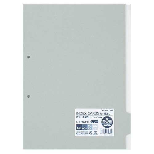 カラー仕切カード ファイル用5山見出し A4-S 2穴 第5山・グレー 20枚 シキ-60-5