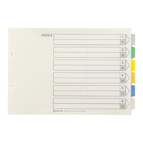カラーインデックス A4横 6色6山7枚 2穴 10組入 908-6Y