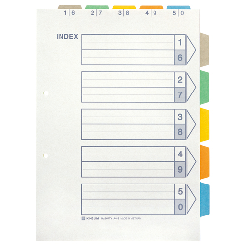 カラーインデックス A4縦 2穴 5山 上山付き 5組入 907TY-5K
