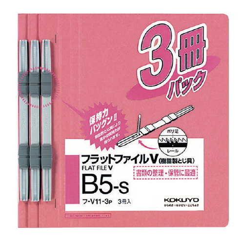 フラットファイルV(樹脂製とじ具)3冊 B5縦 15mm ピンク フ-V11-3P