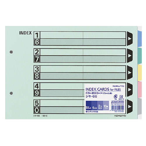 カラー仕切カード(ファイル用) B5横 5山+扉紙 2穴 10組入 シキ-66