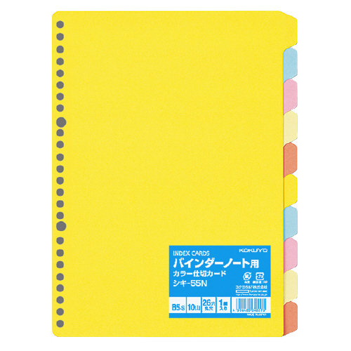 カラー仕切カード(バインダーノート用) B5縦 26穴 5色10山×1組 シキ-55N