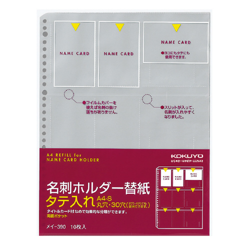 名刺ホルダー替紙 タテ入れ 30穴 180名収容 10枚入 メイ-390