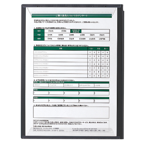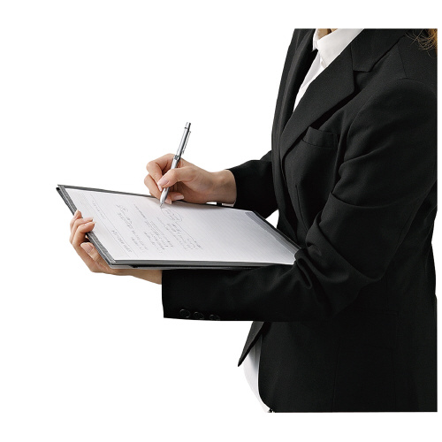 ●固い表紙&クリップでしっかり書ける/アンケート用紙や調査票などをしっかり保持し、机が無い場所でもきれいに記入できます。