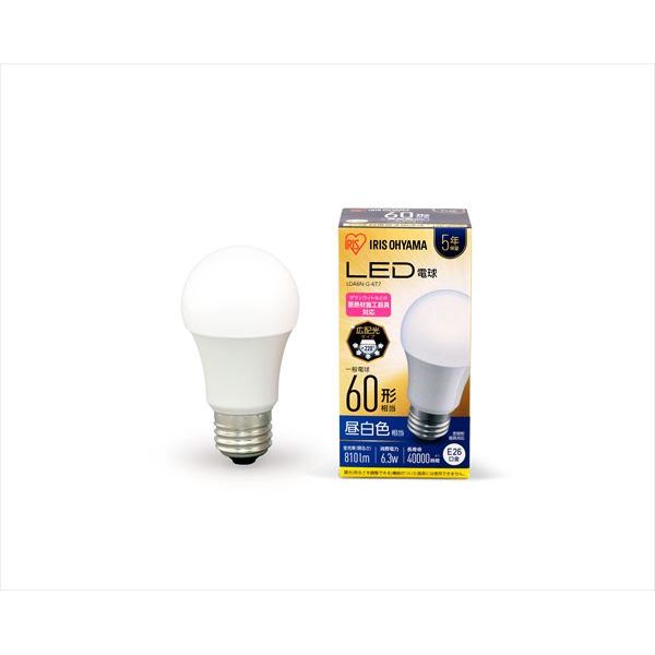 商品の説明サイズ:2)60W?|?スタイル名:1)1個?|?色:1)昼白色白熱電球のように光が広がる、広配光タイプのLED電球です。リビングやダイニングなどの照明に最適です。口金サイズがE26なので、照明器具を替えることなく使用できます。光色はバランスが取れた明るさで過ごしやすい空間を演出する「昼白色相当」と温かみのある「電球色相当」の2種類です。5年保証で長寿命約40000時間の、ランプ交換の手間が少ないLED電球です。また、省エネで電気代も節約できます。密閉形器具対応。ダウンライトなどの断熱材施工器具対応。※器具の種類によって、寸法が合わない、熱がこもる等の要因により、使用できなかったり、寿命が短くなる場合があります。※調光(明るさを調整できる)機能の付いた器具には使用できません。★LED電球の特長★・水銀レス:環境に有害な水銀を含みません。・すぐに明るく:スイッチを入れた瞬間に明るく点灯します。・虫が集まりにくい:虫が集まりやすい紫外線領域波長をほとんど出さず、灯具清掃の手間を軽減できます。・ON/OFFに強い:スイッチを頻繁にON/OFFしても劣化せず、寿命が短くなりません。・低UV/低赤外線:紫外線や赤外線をほとんど出さないので、紫外線による色あせや赤外線による熱が気になりません。●商品サイズ(cm):直径約5.2×高さ約9.8●商品重量:約82g●口金サイズ:E26●光色相当:昼白色相当●型番:LDA6NG6T7●定格消費電力:6.3W●定格入力電流:0.106A●全光束:810lm●配光角:約220°●設計寿命:約40000時間●電源:100V(50/60Hz共用)●使用場所:屋内用●ランプ全体の明るさ:一般電球60形相当●エネルギー消費効率:128.5lm/W●断熱材施工器具:○●密閉形器具:○※密閉形器具の種類によって、寸法が合わない、熱がこもる等の要因により、使用できなかったり、寿命が短くなる場合があります。