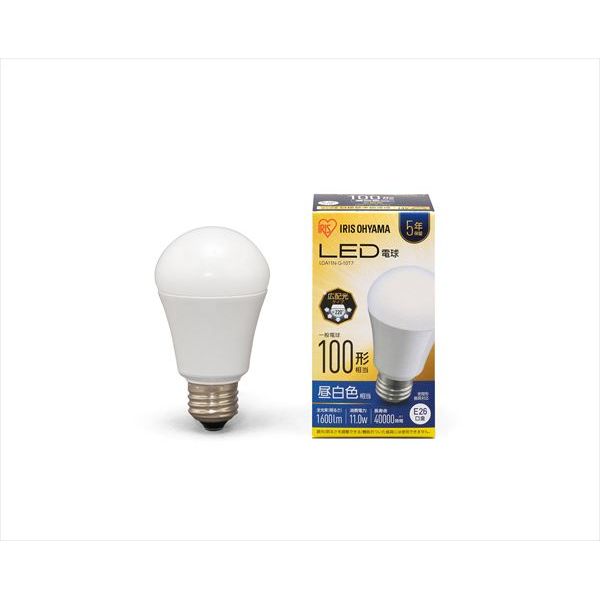 商品の説明サイズ:3)100W?|?スタイル名:1)1個?|?色:1)昼白色白熱電球のように光が広がる、広配光タイプのLED電球です。リビングやダイニングなどの照明に最適です。口金サイズがE26なので、照明器具を替えることなく使用できます。光色はバランスが取れた明るさで過ごしやすい空間を演出する「昼白色相当」と温かみのある「電球色相当」の2種類です。5年保証で長寿命約40000時間の、ランプ交換の手間が少ないLED電球です。また、省エネで電気代も節約できます。密閉形器具対応。※器具の種類によって、寸法が合わない、熱がこもる等の要因により、使用できなかったり、寿命が短くなる場合があります。※調光(明るさを調整できる)機能の付いた器具には使用できません。★LED電球の特長★・水銀レス:環境に有害な水銀を含みません。・すぐに明るく:スイッチを入れた瞬間に明るく点灯します。・虫が集まりにくい:虫が集まりやすい紫外線領域波長をほとんど出さず、灯具清掃の手間を軽減できます。・ON/OFFに強い:スイッチを頻繁にON/OFFしても劣化せず、寿命が短くなりません。・低UV/低赤外線:紫外線や赤外線をほとんど出さないので、紫外線による色あせや赤外線による熱が気になりません。●商品サイズ(cm):直径約5.8×高さ約10.5●商品重量:約178g●口金サイズ:E26●光色相当:昼白色相当●型番:LDA11NG10T7●定格消費電力:11W●定格入力電流:0.111A●全光束:1600lm●配光角:約220°●設計寿命:約40000時間●電源:100V(50/60Hz共用)●使用場所:屋内用●ランプ全体の明るさ:一般電球100形相当●エネルギー消費効率:145.4lm/W●密閉形器具:○※密閉形器具の種類によって、寸法が合わない、熱がこもる等の要因により、使用できなかったり、寿命が短くなる場合があります。
