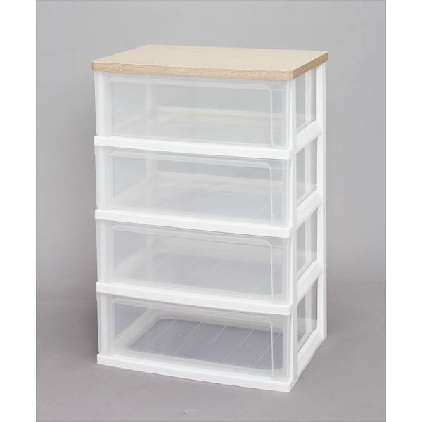 ・新生活応援! 【4段タイプ】衣類の収納にピッタリ。木の天板がおしゃれで優しい雰囲気のチェスト型収納ケース。組み立ていらずの完成品でお届け。
