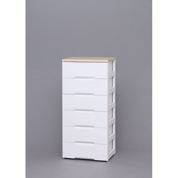 商品の説明サイズ:2)幅56cm?|?スタイル:B.5段単品?|?カラー:ホワイト/天板ナチュラルリビングの収納にピッタリの木天板付きチェストです。木天板は汚れに強く、前板は塗装家具のような質感でおしゃれなデザインです。また、引出しには開閉がスムーズな金属レールを採用しました。Yシャツを2枚並べて収納できる幅56cmタイプです。※完成品でお届けします。※上段を下段に重ねる作業のみ必要です。