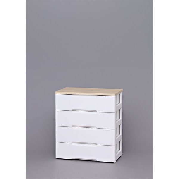 ・【どんな場所でも】プラスチック製の引き出しは中が見えないタイプなので、どんなお部屋にも置きやすい。木の天板がおしゃれで優しい雰囲気。