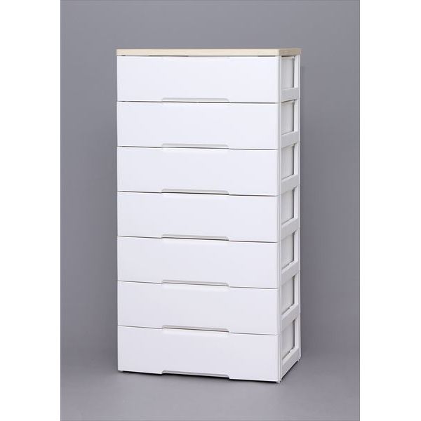 商品の説明サイズ:4)幅80cm?|?スタイル:C.6段単品?|?カラー:ホワイト/天板ナチュラルリビングの収納にピッタリの木天板付きのおしゃれなチェストです。木天板は汚れに強く、前板は塗装家具のような質感でデザイン性にも優れています。また、引出しには開閉がスムーズな金属レールを採用しました。引出しは厚手のセーター等が2枚ゆったり収納できるサイズです。※完成品でお届けします。※上段を下段に重ねる作業のみ必要です。