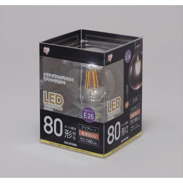 LEDフィラメント電球 ボール球タイプ80形 電球色 クリアタイプ