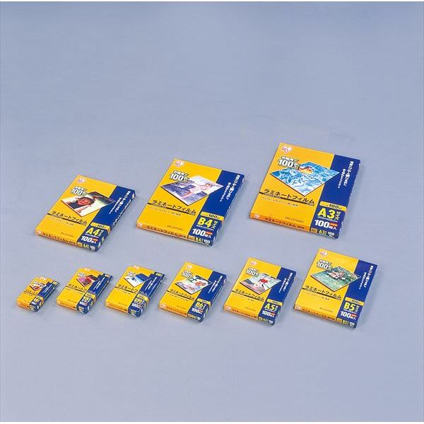 ・【特徴】:厚さ100ミクロンのラミネートフィルム100枚入り.名刺サイズからA3サイズまで、9サイズの品揃え.