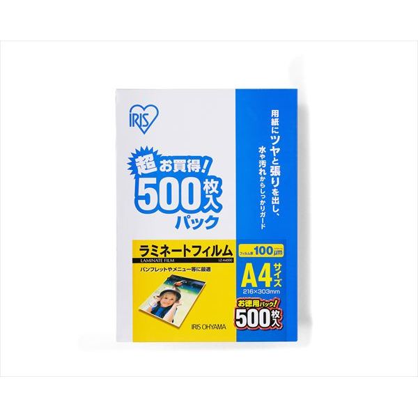 ・【特徴】:厚さ100ミクロンのラミネートフィルム500枚入り.用紙にツヤと張りを出し、水や汚れからしっかり守る.