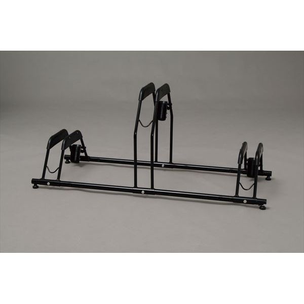 ・仕様 : タンド間の間隔を段階的に広げて設置可能、地面の凸凹に合わせて高さを調節できるアジャスター付、プラスチックのタイヤ受けとカバー付
