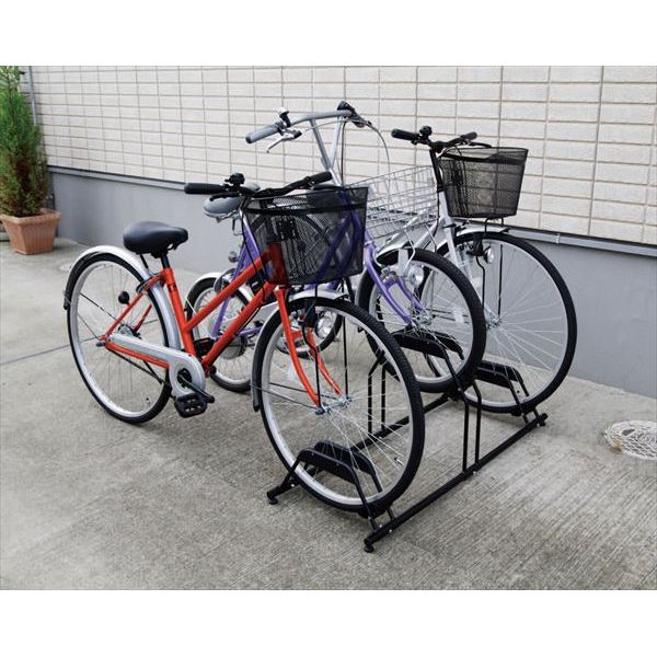 商品の説明サイズ:1個?|?スタイル:収容台数(台):2●地面の凸凹に合わせて高さを調節できるアジャスター付です。●プラスチックのタイヤ受けとカバーが付いているので、自転車への当たりがソフトです。●スタンドが動かないように地面と固定する部品が付いています。