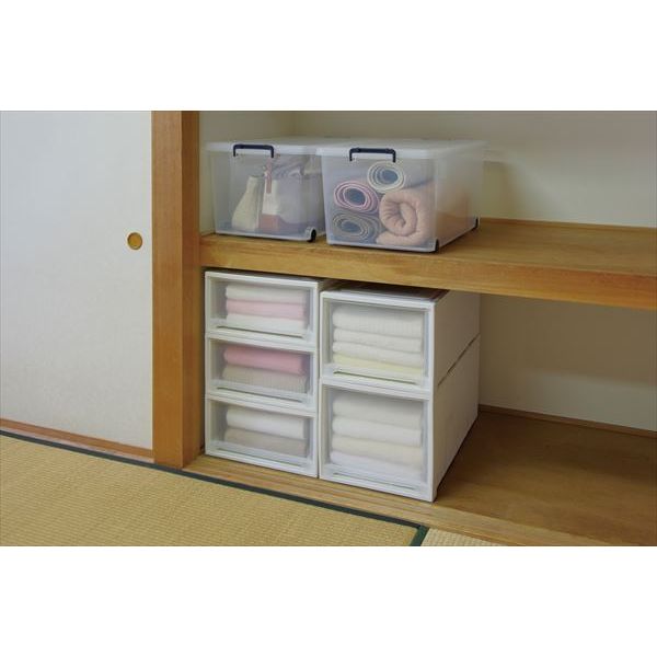 商品の説明サイズ:幅39cmタイプ?|?スタイル:奥行74x高さ30cm?|?カラー:単品【特長】●軽い力で引き出せる金属レールを採用しています。●積み重ねての使用時、ズレない形状です。【用途】【使用】●容量(L):49.5●色:ホワイト/クリア●外形寸法(mm)間口×奥行×高さ:390×740×300●有効内寸(mm)間口×奥行×高さ:295×685×245●質量(kg):2.95●色:ホワイト/クリア【材質/仕上】●本体・引き出し:ポリプロピレン(PP)●レール:スチール【セット内容/付属品】【注意】