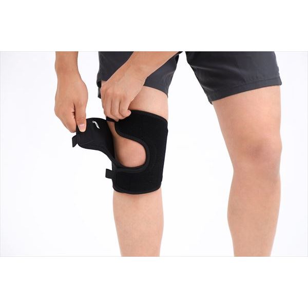動きに合わせて伸縮素材が伸び縮みするので、ずれを防止して膝をしっかり固定。