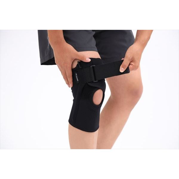 動きに合わせて伸縮素材が伸び縮みするので、ずれを防止して膝をしっかり固定。