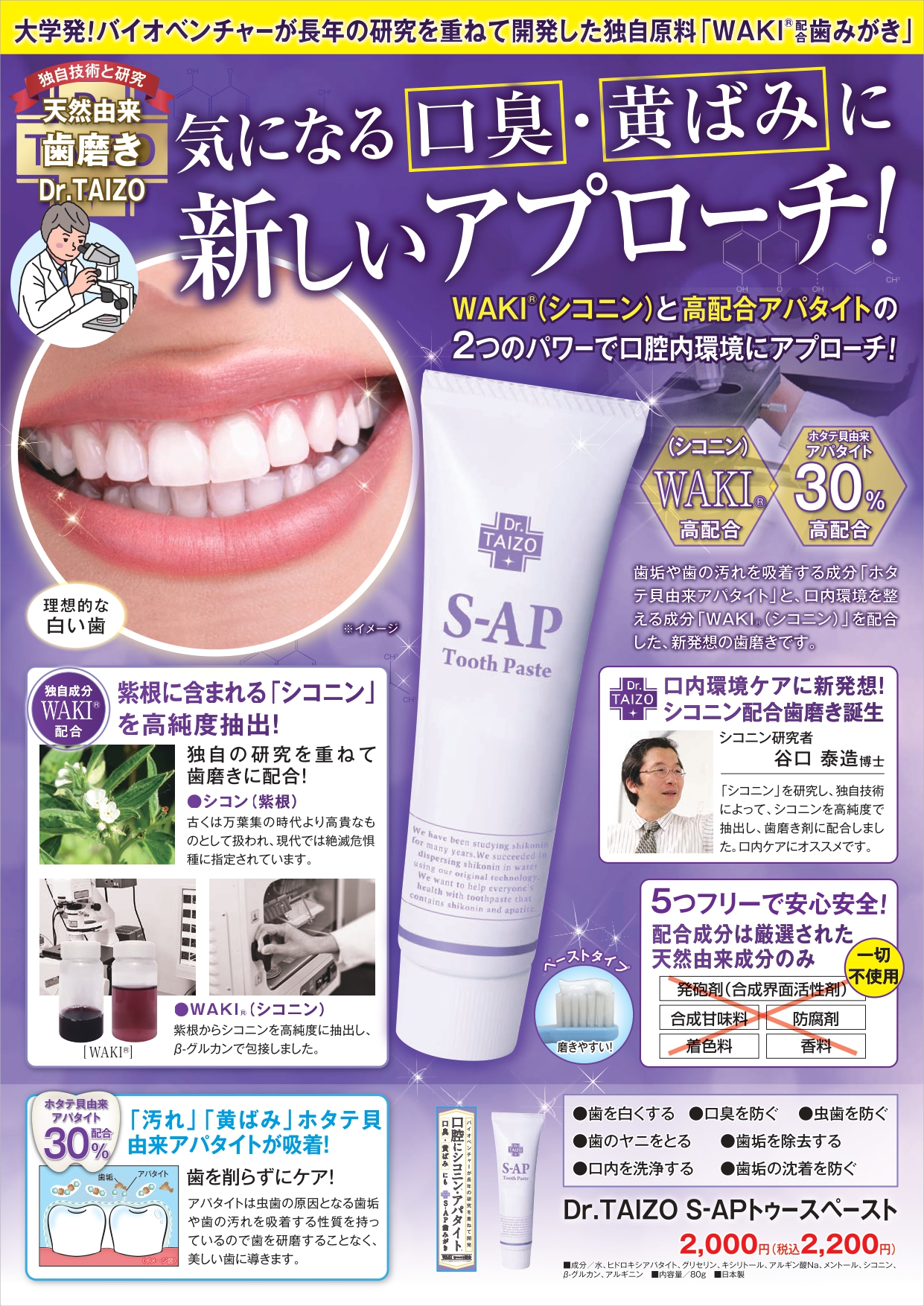 S-APトゥースペースト シコニン配合の菌を閉じ込める画期的な歯磨き粉
