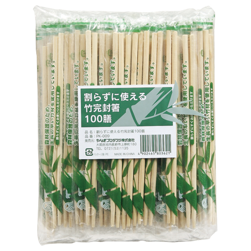 割らずに使える竹箸 20cm ポリ完封楊枝入 100膳 PK-009
