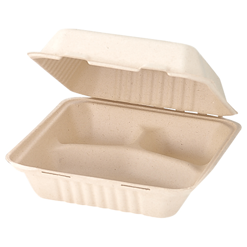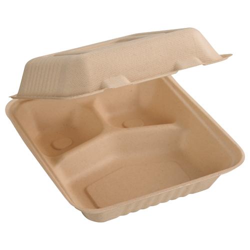 ●テイクアウトに最適な、紙製のフードパックです。使いやすいフタ一体型。三つ仕切りで便利に使える。