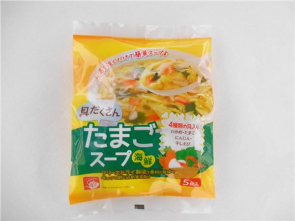 旨味のあるスープに4種類の具材を加えました。お湯を注ぐだけで、簡単においしいスープを楽しめます。