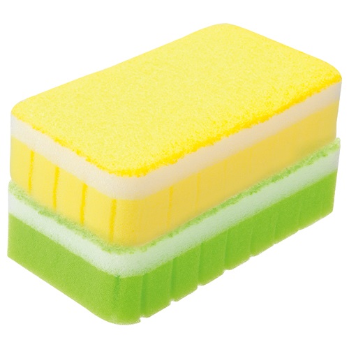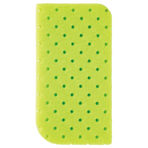 ●穴あきウレタンで泡立ちたっぷり。特殊粒子でキズをつけずにソフトに洗える。