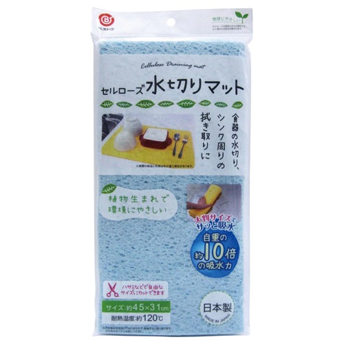 ●ソフトで吸水性にすぐれたセルローズ製マット。食器の水切りマットからシンクやテーブルの拭き取りなどに使用できます。大判サイズなのでハサミなどでお好きなサイズに切ってもOK。