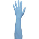 ●取り出しやすいボックスタイプのニトリルゴム製使いきり手袋50枚入 ●全長40cmのロングタイプ ●全長/400mm ●中指/83mm ●手のひらまわり/105mm ●材質/ニトリルゴム ●50枚入り ●指先の厚さ/約0.24mm ●粉なし ●色/ブルー ●食品衛生法適合 ●ニトリルゴム製のため、耐油性に優れています ●伸縮性があり、やわらかく手にフィットするため、長時間の作業にも適しています