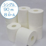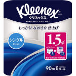 114mm×90m●シングル●8ロール●芯・ミシン目あり●材質/パルプ100%●8ロールで12ロール分の長さ(クリネックス12ロールとの比較。)。たっぷり使えるロングロール。表面性の良いしっかりエンボス加工で丈夫でさらっとした拭きごこち。リンゴ酸配合の消臭コアを採用し、トイレの中のアンモニア臭を中和して軽減。●無香タイプ。