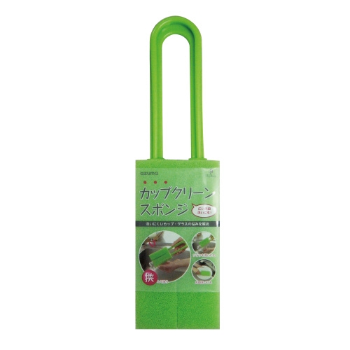 ●柄が付いたキッチン用のスポンジです。長いサイズなので、底まで手の入らない丈の長いコップを洗うのに最適です。スポンジにコップをはさんで回しながら使えば、両面を一度に洗うことができます。大きめサイズです。大きいビールジョッキや口の広いグラスなどを洗うのに便利です。レストランやビアホール等でもよく使われています。
