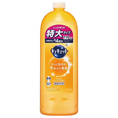 ●独自のハイブリッドウォッシュ処方で、濃密泡とすすぎの早さを両立。固まった油汚れまで細かく分解し、洗っても残っていた脂の膜まで一気にパッ!汚れ落ちを指先と音でキュッと実感して下さい。まな板とスポンジの除菌ができます。オレンジの香り。