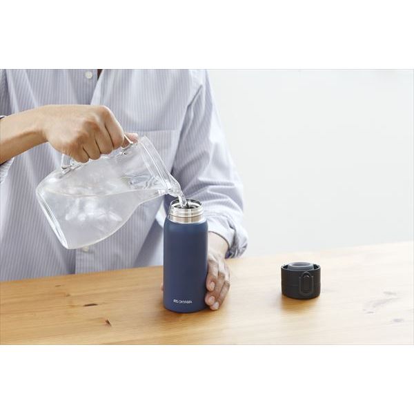 商品の説明サイズ:350ml?|?カラー:ブルー?|?パターン(種類):単品(ワンタッチタイプ)片手で簡単にふたを開けることができる便利なワンタッチタイプのマグボトルです。外びんと内びんの間の真空断熱層が温度をキープするので中の温度を逃がしにくく、外の熱を中に伝えにくい。持ち運びにも安心なロック付き。ボタンを押すだけで片手で開けられます。飲み口は取り外して洗えるので、お手入れが簡単で、しっかり洗えて衛生的です。保温・保冷のどちらにも使用できます。ホッとする温かい飲み物で、ランチを楽しむリラックスタイム、シャキッと冷たい飲み物で、水分補給&リフレッシュタイム。●商品サイズ(cm)幅約6.5×奥行約7.0×高さ約18.1●質量約209g●実容量 約0.35L●保温効力 63℃以上(6時間)●保冷効力 8℃以下(6時間)●主要材質 本体:ステンレス鋼(外側 アクリル樹脂塗装)ふた:ポリプロピレン飲み口:ポリプロピレンせん:ポリプロピレンパッキン:シリコーン※注意事項アッシュホワイトはご使用状況により汚れが付く場合があります。