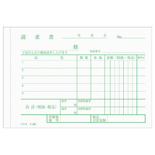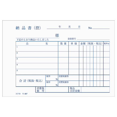 NC複写簿 3枚納品書(請求書付) B7横 5行 50組 ウ-367
