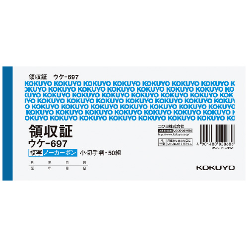 NC複写領収証 小切手判横 2色刷50組 ウケ-697