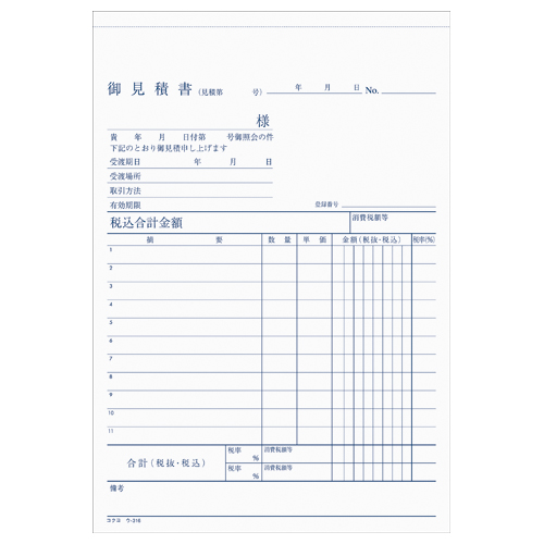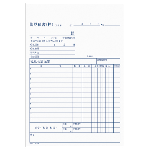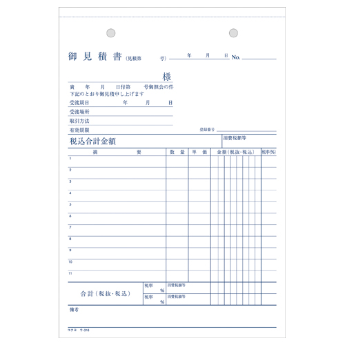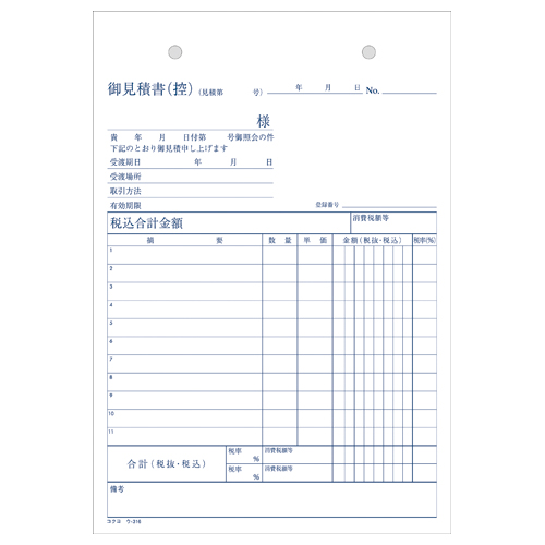 NC複写簿 見積書 A5縦 2穴80mmピッチ11行 50組 ウ-316