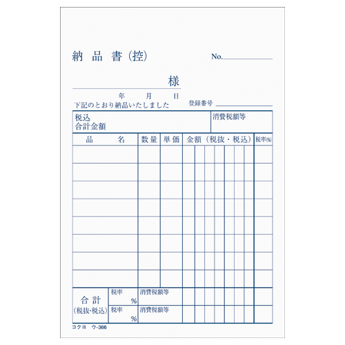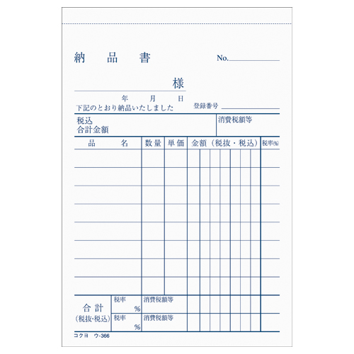 NC複写簿 3枚納品書(請求書付) B7縦 8行 50組 ウ-366