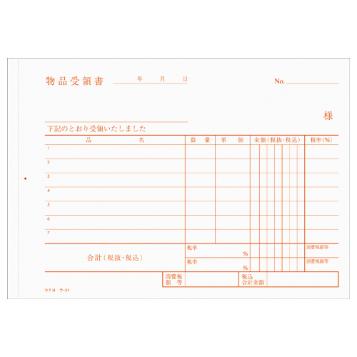 複写簿(カーボン紙必要) 3枚納品書 (受領書付き) B6横 7行 50組 ウ-31N